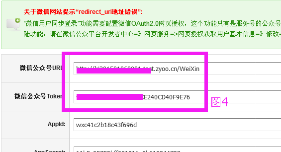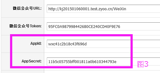 和AppSecret的输入框(图3),复制输入保存。