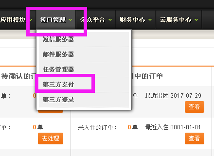 Step6:配置全社通网站后台,点接口管理,找到第三方支付点击,找到微信支付,把相关参数输入即可。