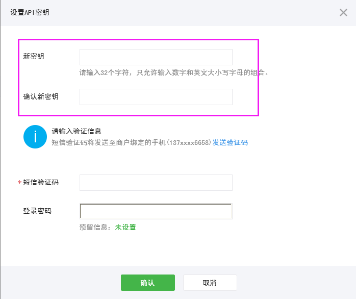 1.API密钥(Key):就是在商户平台您自己设置的32位密码