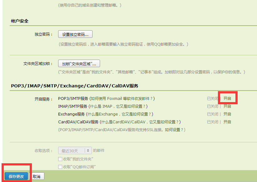 开通QQ邮箱的POP3/SMTP服务。登陆QQ邮箱后,设置—账户—开启POP3/SMTP服务。