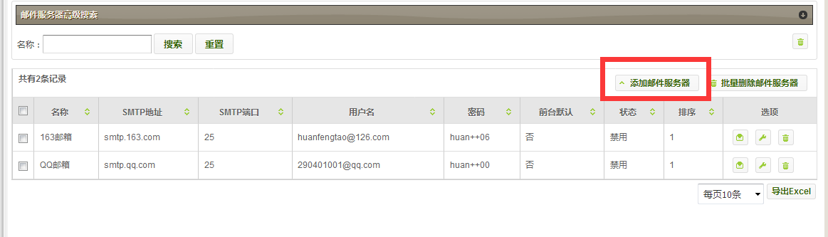 1.邮件服务器,管理员可以进行对邮件服务器的接口进行添加、修改、删除、测试等操作。