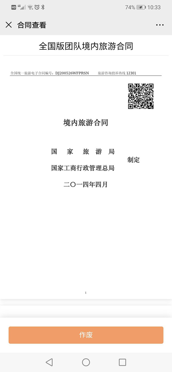 相对于传统的纸质版合同,电子合同更方便:游客足不出户,就可以直接用手机电子签名与旅行社签订电子合同,实现在线交易,并可随时随地通过网络查询合同内容。更有保障:旅游电子合同签订后,如果内容需要修改,则必须有游客再次签字确认,杜绝了私自篡改合同的可能。游客与旅行社一旦发生合同纠纷,旅游投诉受理部门通过电子合同系统查阅双方合同内容,协调纠纷,有利于维护游客的合法权益。互联网+的时代背景下,旅游电子合同的应用是一种必然的趋势,也将逐步取代传统的纸质合同。