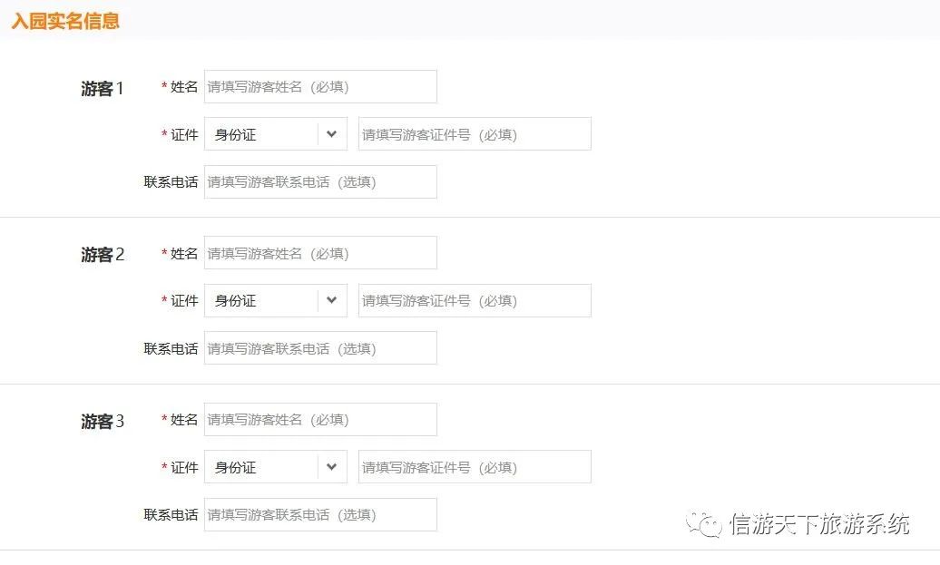 3.PC端门票下单填写入园人信息(无需实名的景区不用填写)