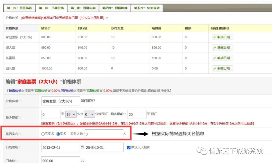 1. 系统后台(含供应商系统后台)门票系统可选择是否需实名,以及实名的人数。