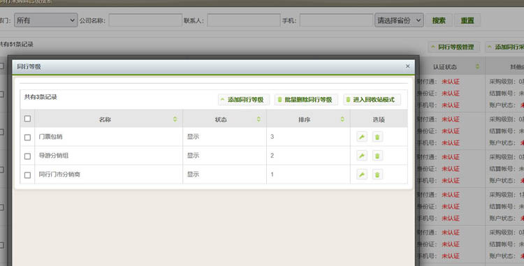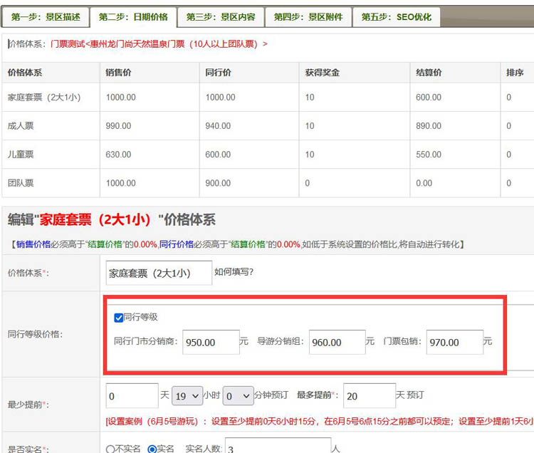 2. 门票价格管理,不同等级的同行,享受不同的优惠