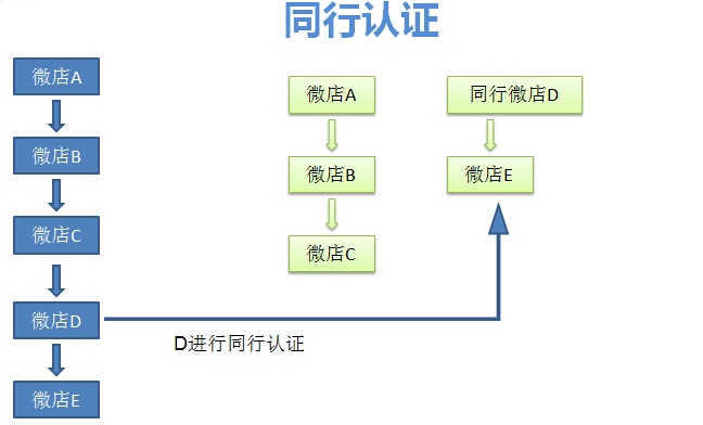 普通微店经过同行认证之后,脱离当前二叉树结构,成为独立的顶级微店,同行微店可享受分销佣金,并可以拿到同行价进行购买支付。(不限层级,只要有下限微店成单即可拿到分销佣金!)