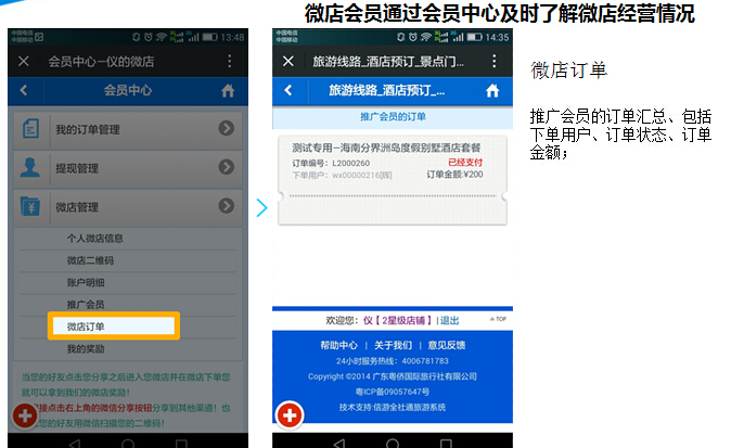 通过您的微信公众号为您的粉丝在您的微网站内开设旅游微店,微店成单后即可给微店主(粉丝)微店奖励和微店佣金。
