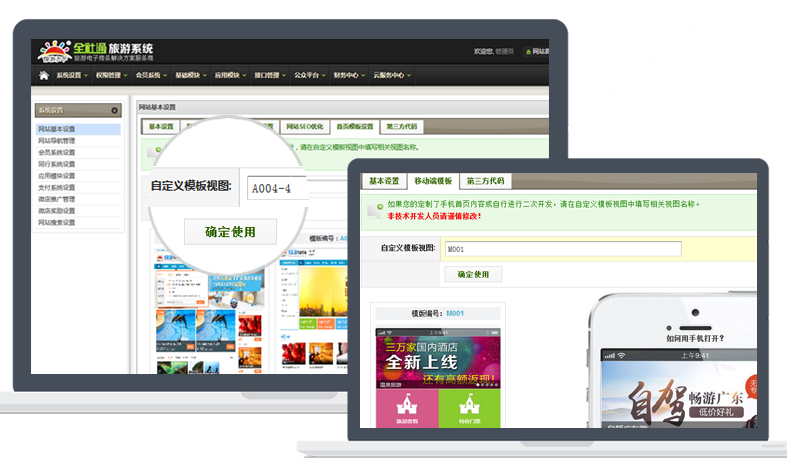 集高效美观于一体的四合一旅游系统,通过智能后台来管理首页模板切换功能,只需简单的配置即可完成;